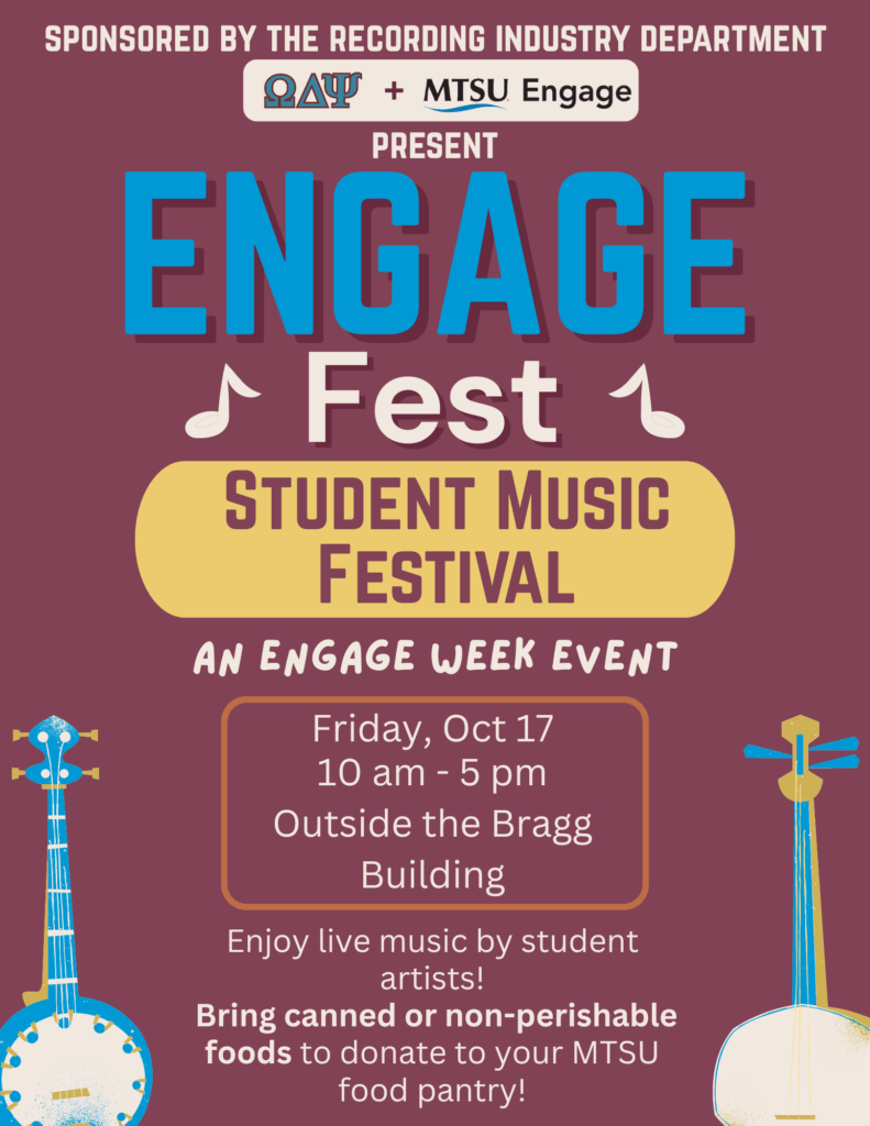 Enjoy live music by student artists! Bring a canned or non-perishable food item to donate to your MTSU food pantry.